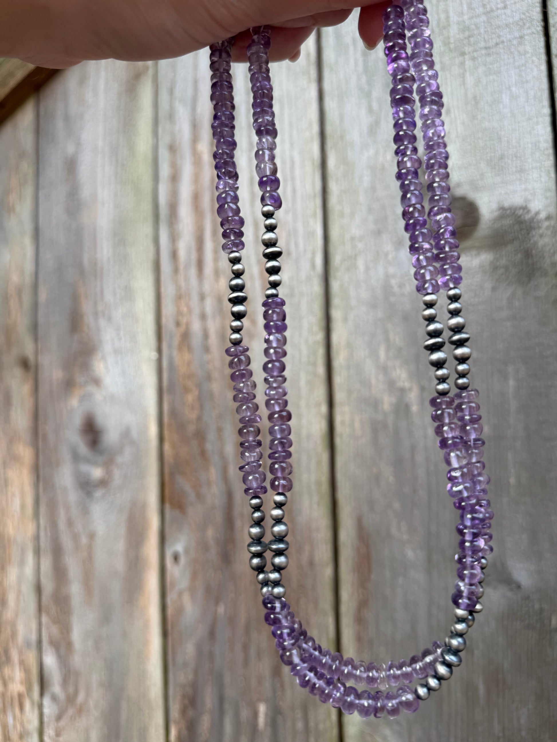 Amethyst and Desert Pearl Sterling Silver 18-20 Inch Necklace