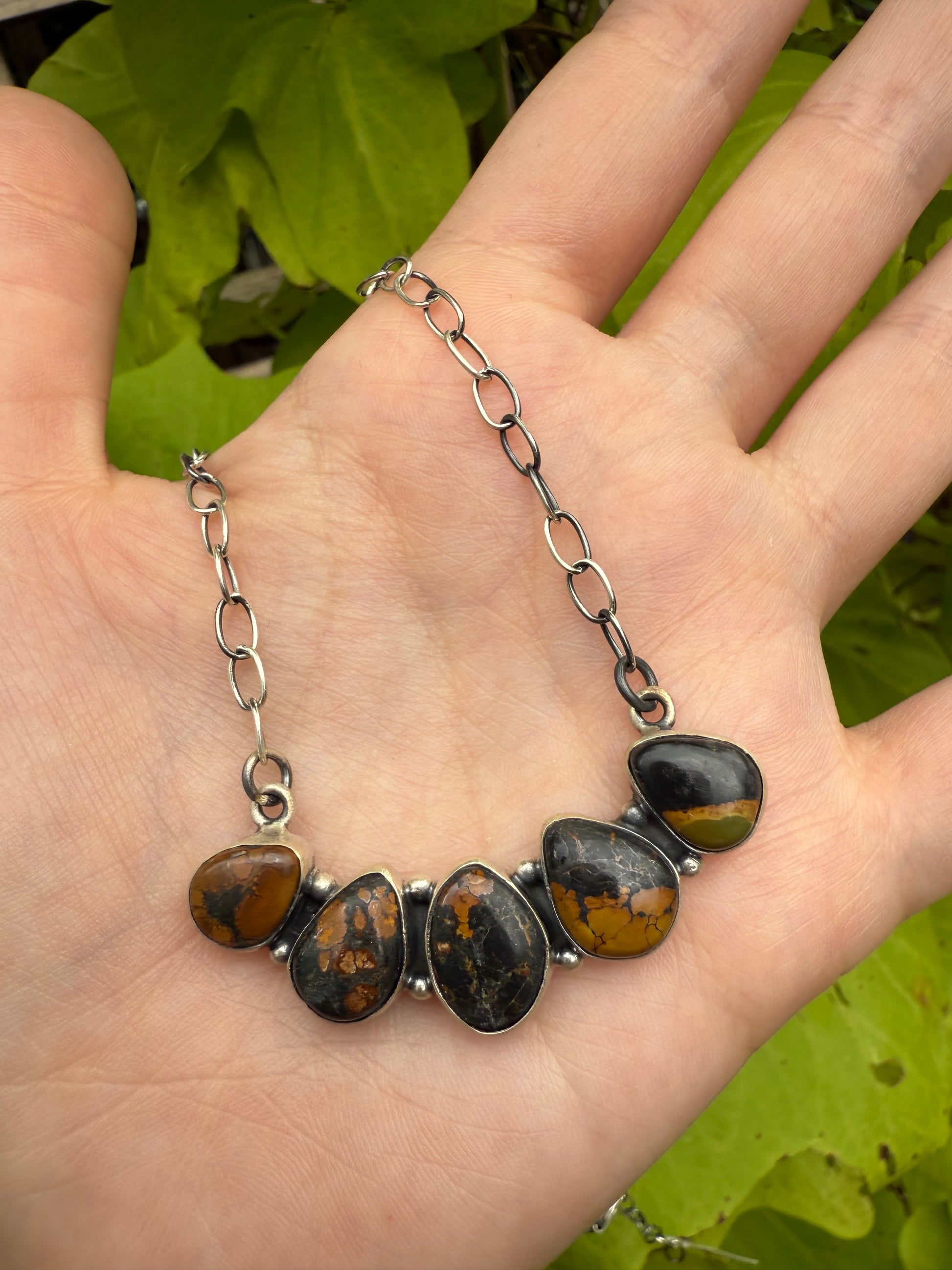 Blackjack Turquoise Bar Necklace Sterling Silver Paperclip Chain Necklace