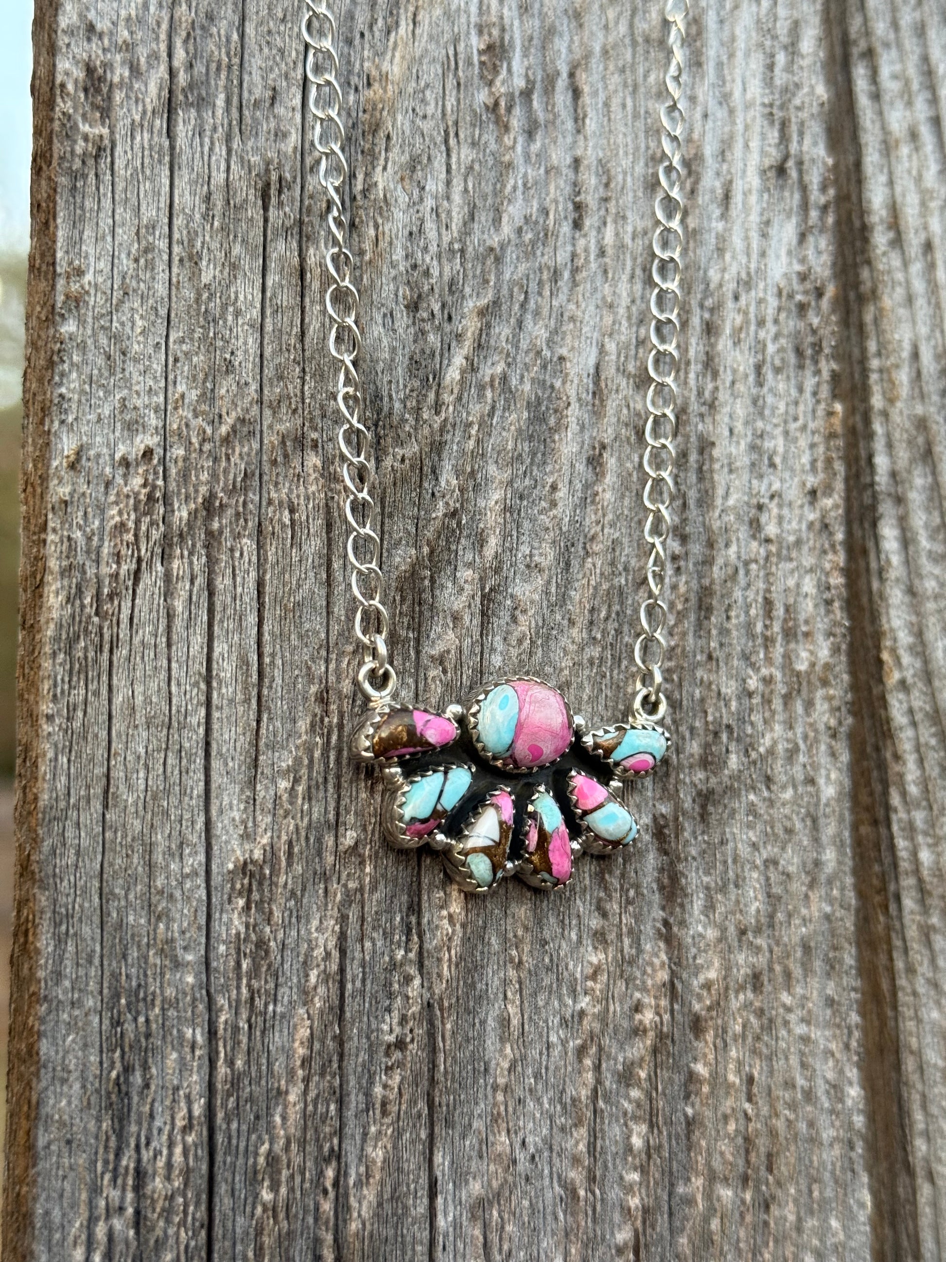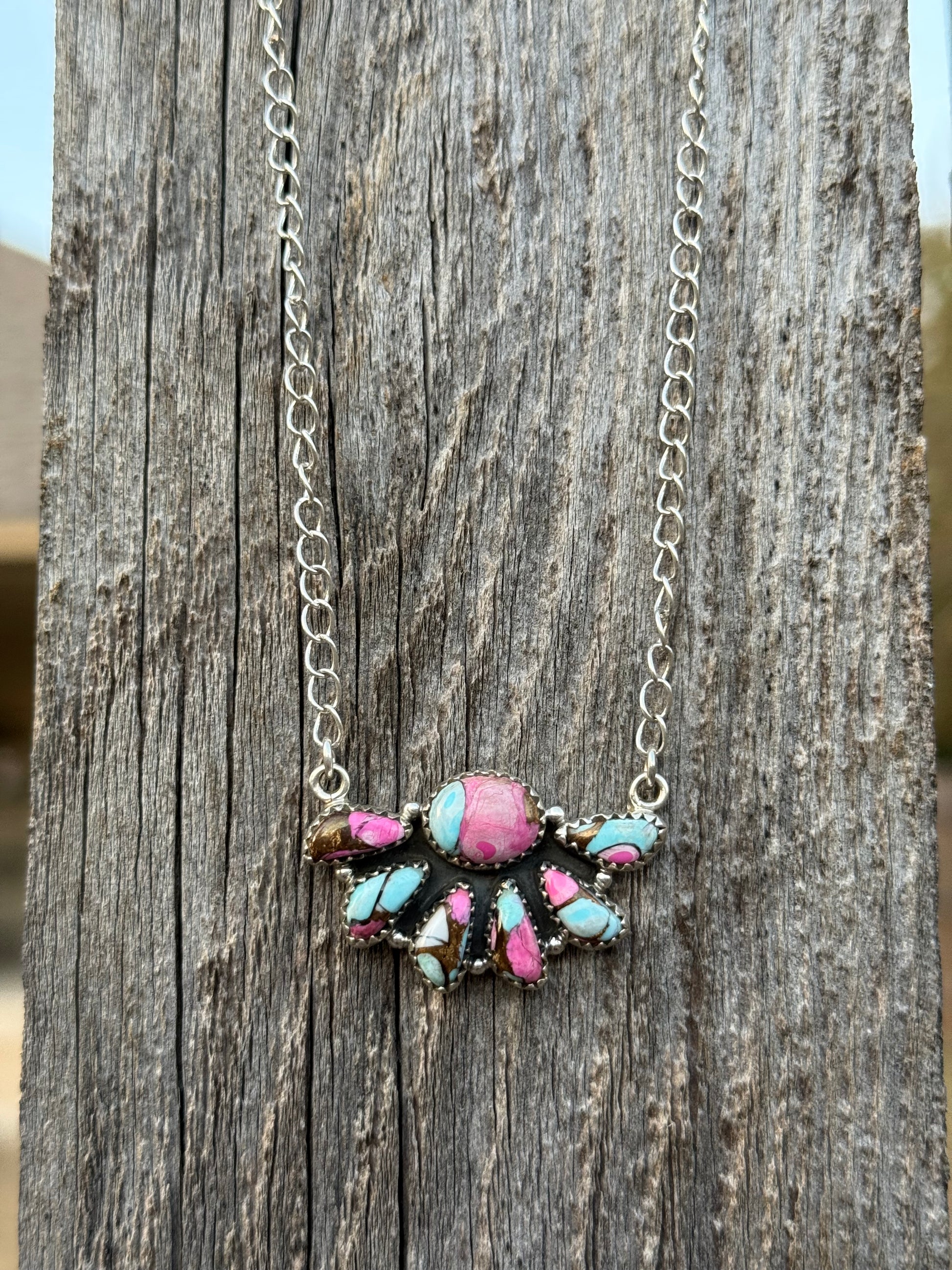 Cotton Candy Turquoise Half Flower Necklace 925 Sterling Silver