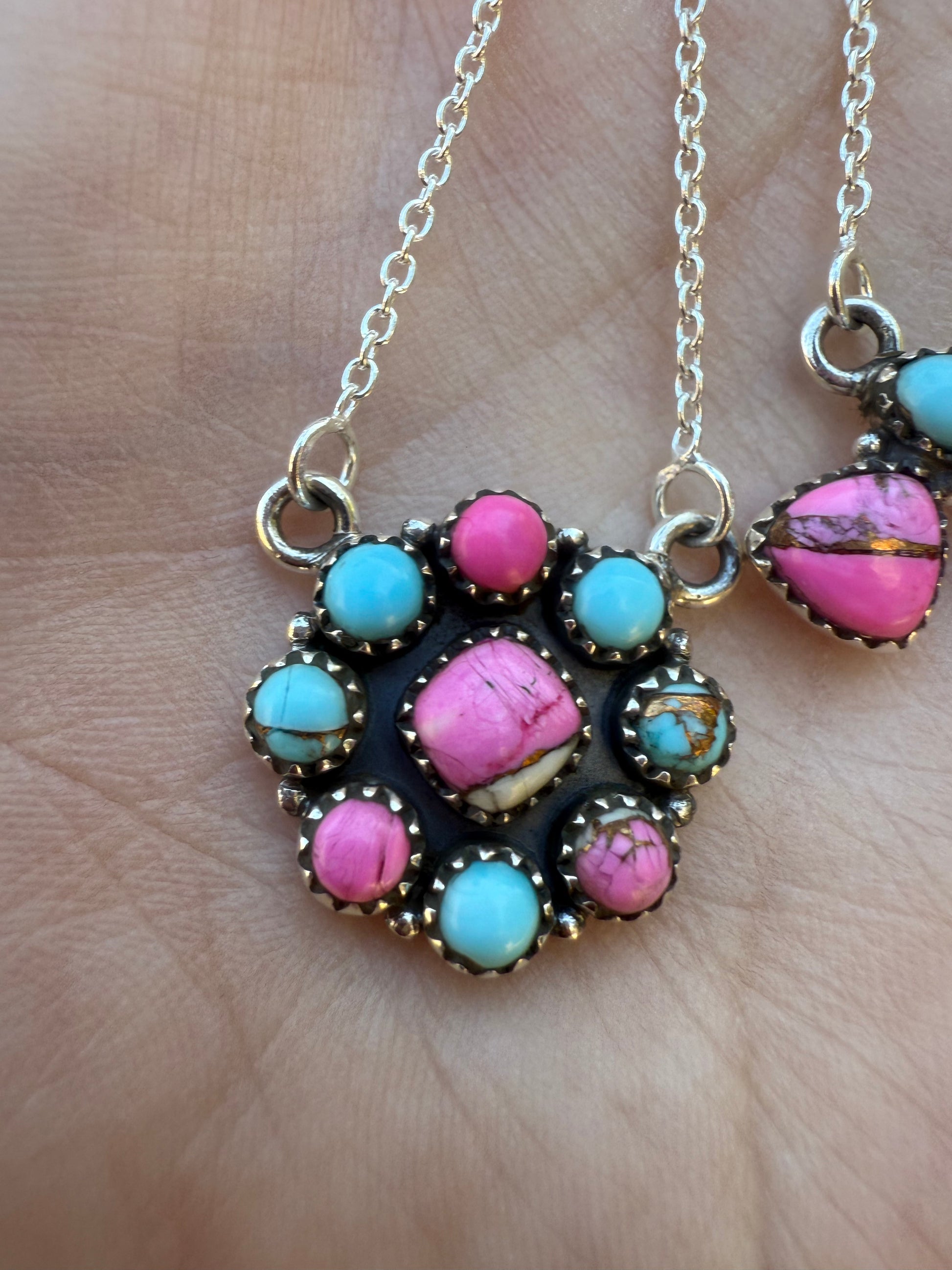 Cotton Candy Turquoise Sterling Silver Necklace