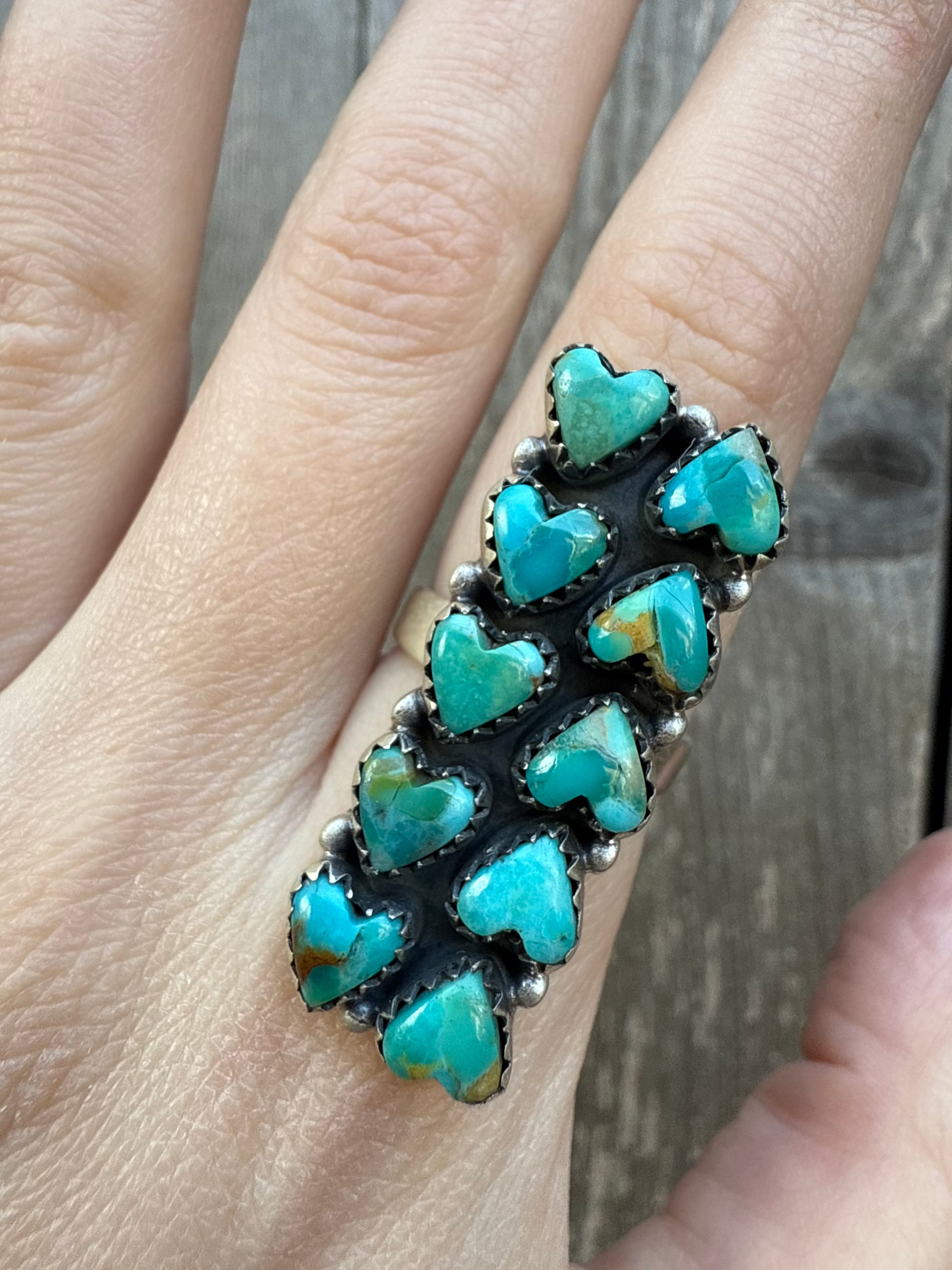 Kingman Turquoise Heart Bar Cluster Sterling Silver Ring