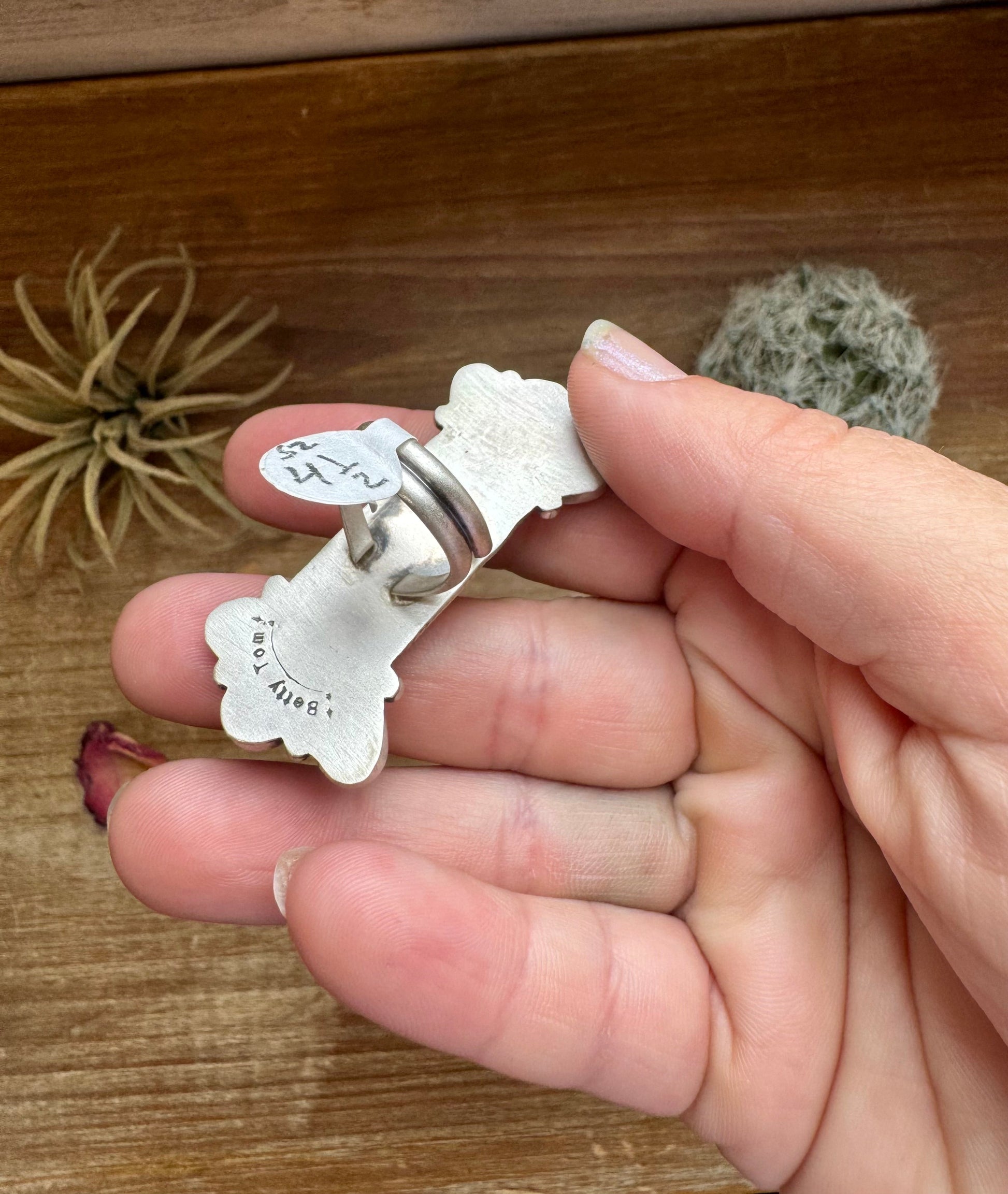 Long Ring- Size 5 - mix stone turquoise, spiny and sterling silver
