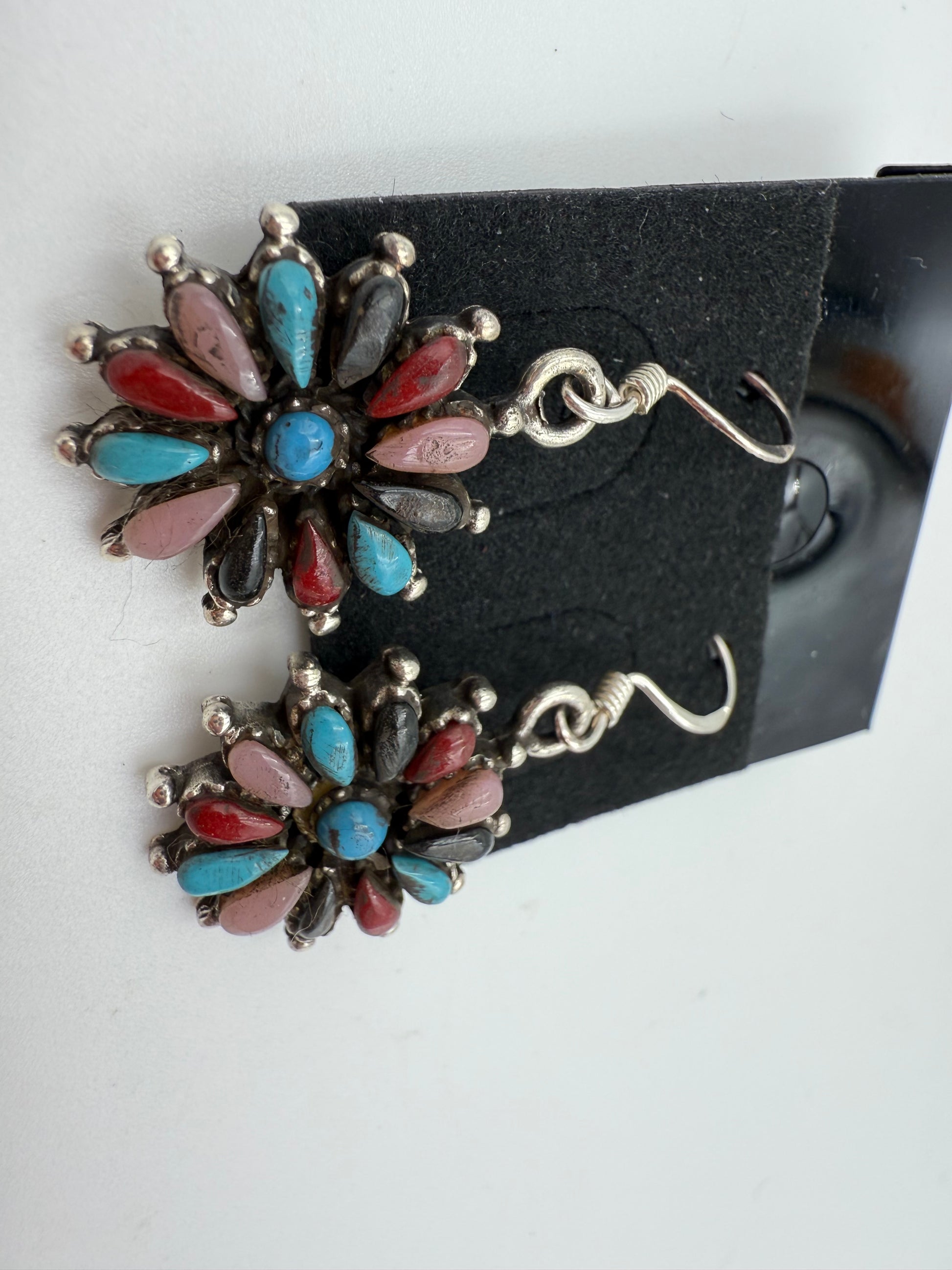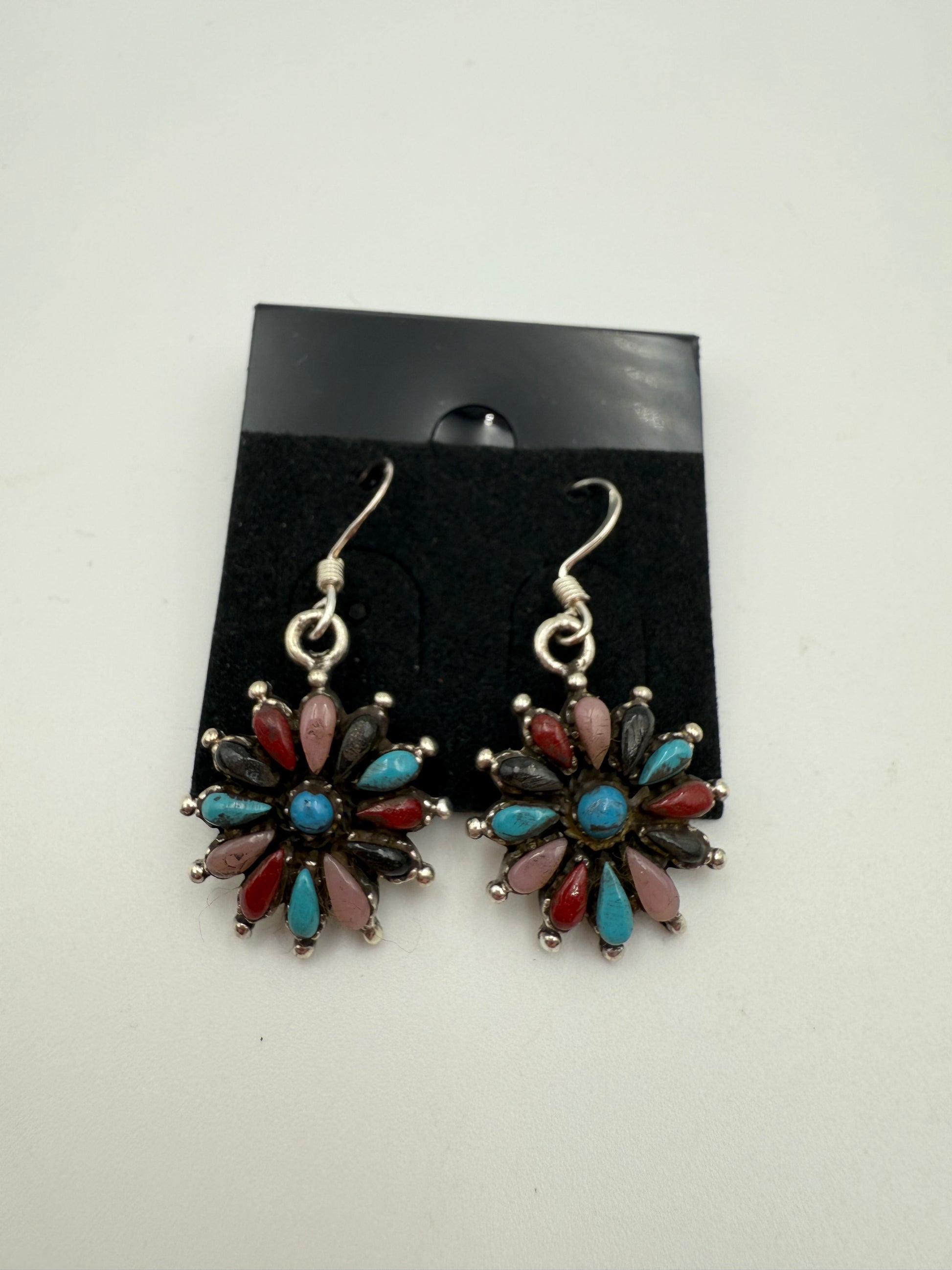 Multicolor Turquoise Needle Point Flower Earrings