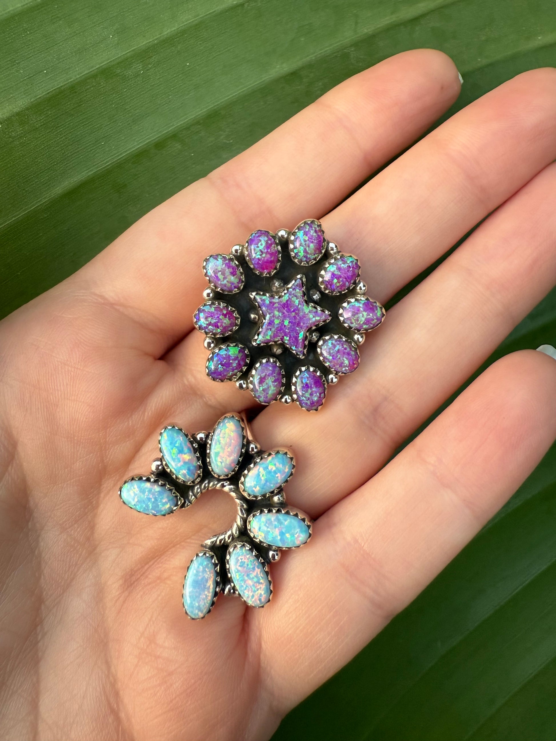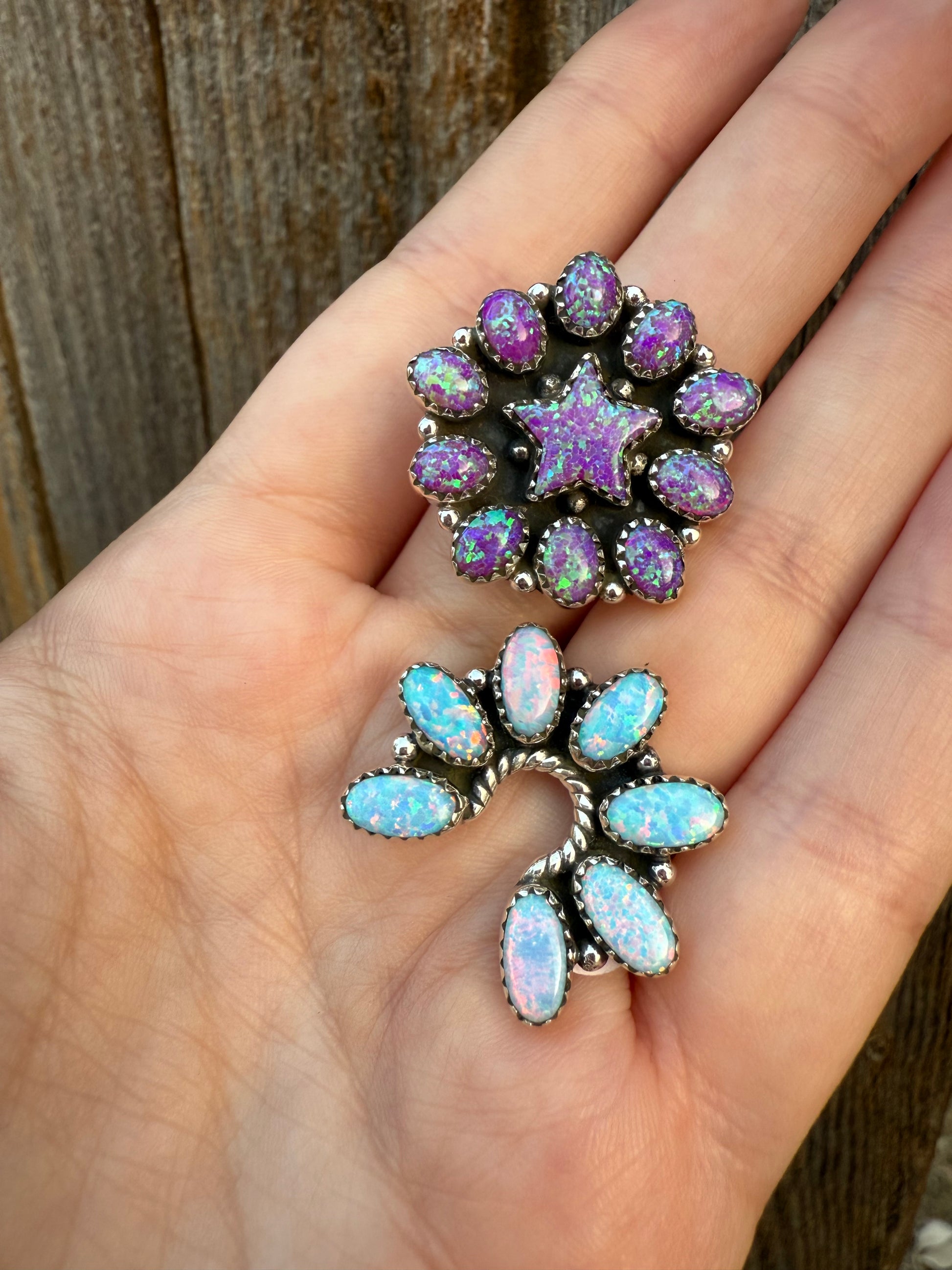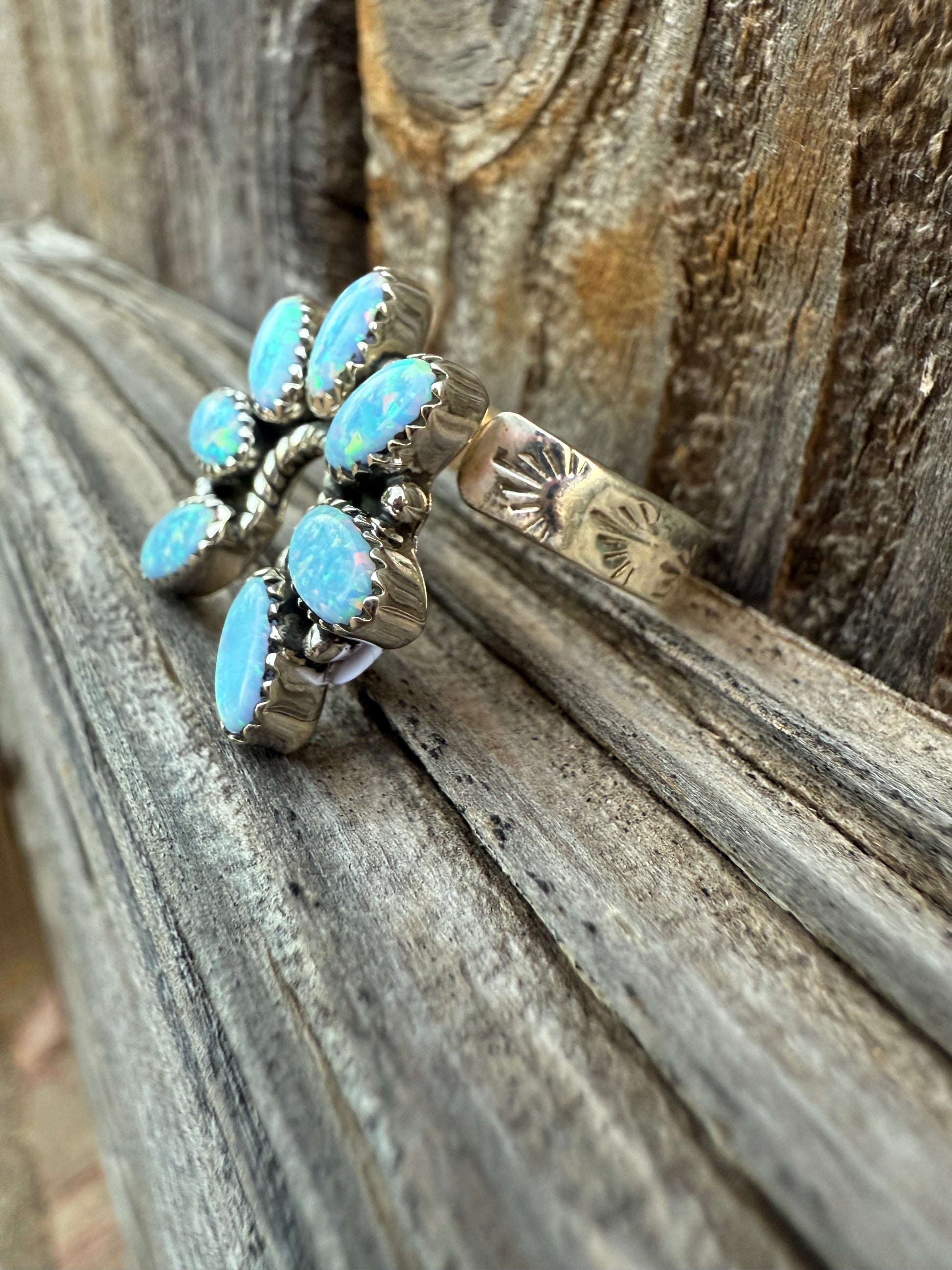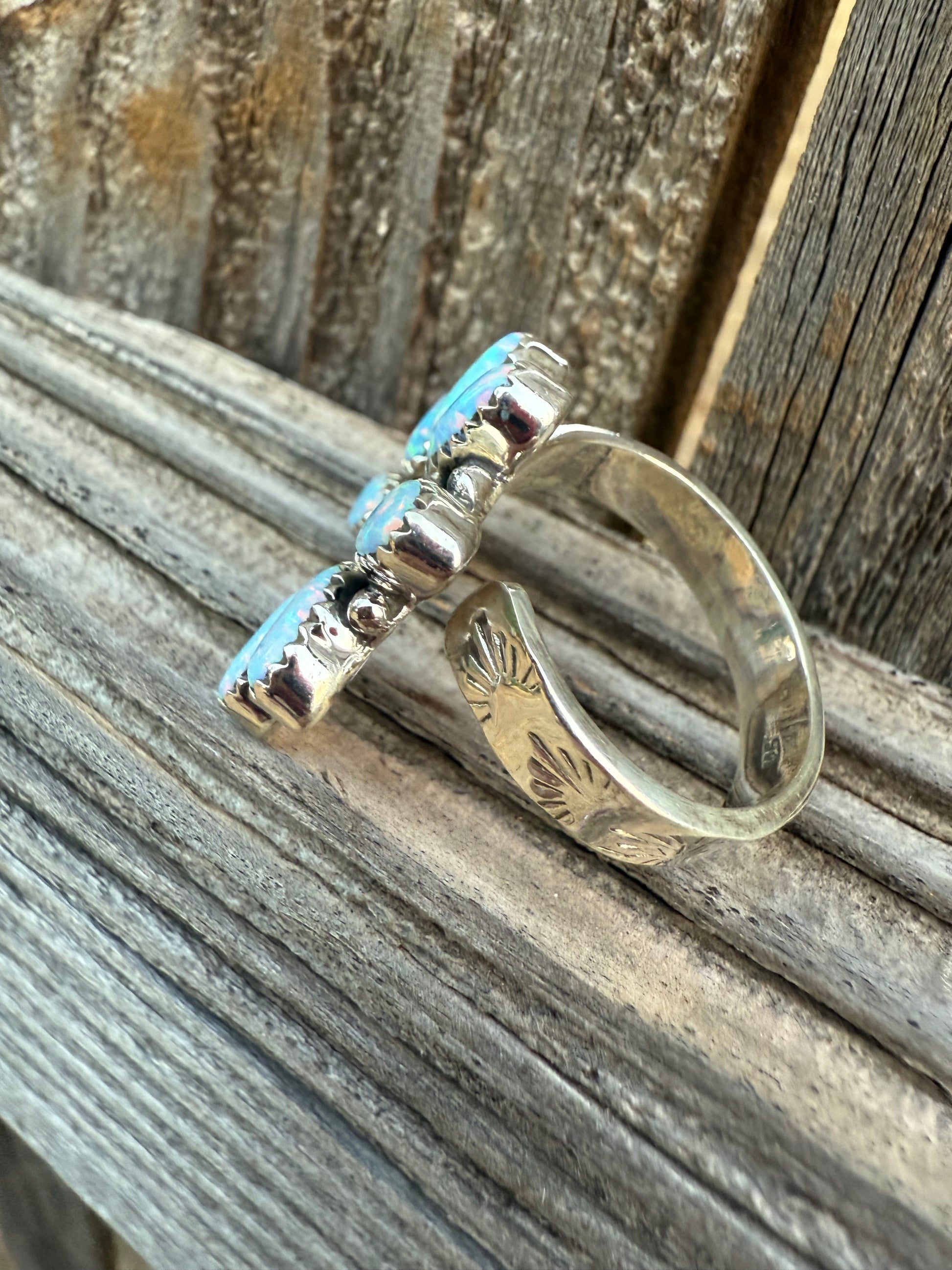 This stunning women's ring features a beautiful arrangement of opal stones set in a sleek silver band. Perfect for adding a touch of elegance to any outfit.
