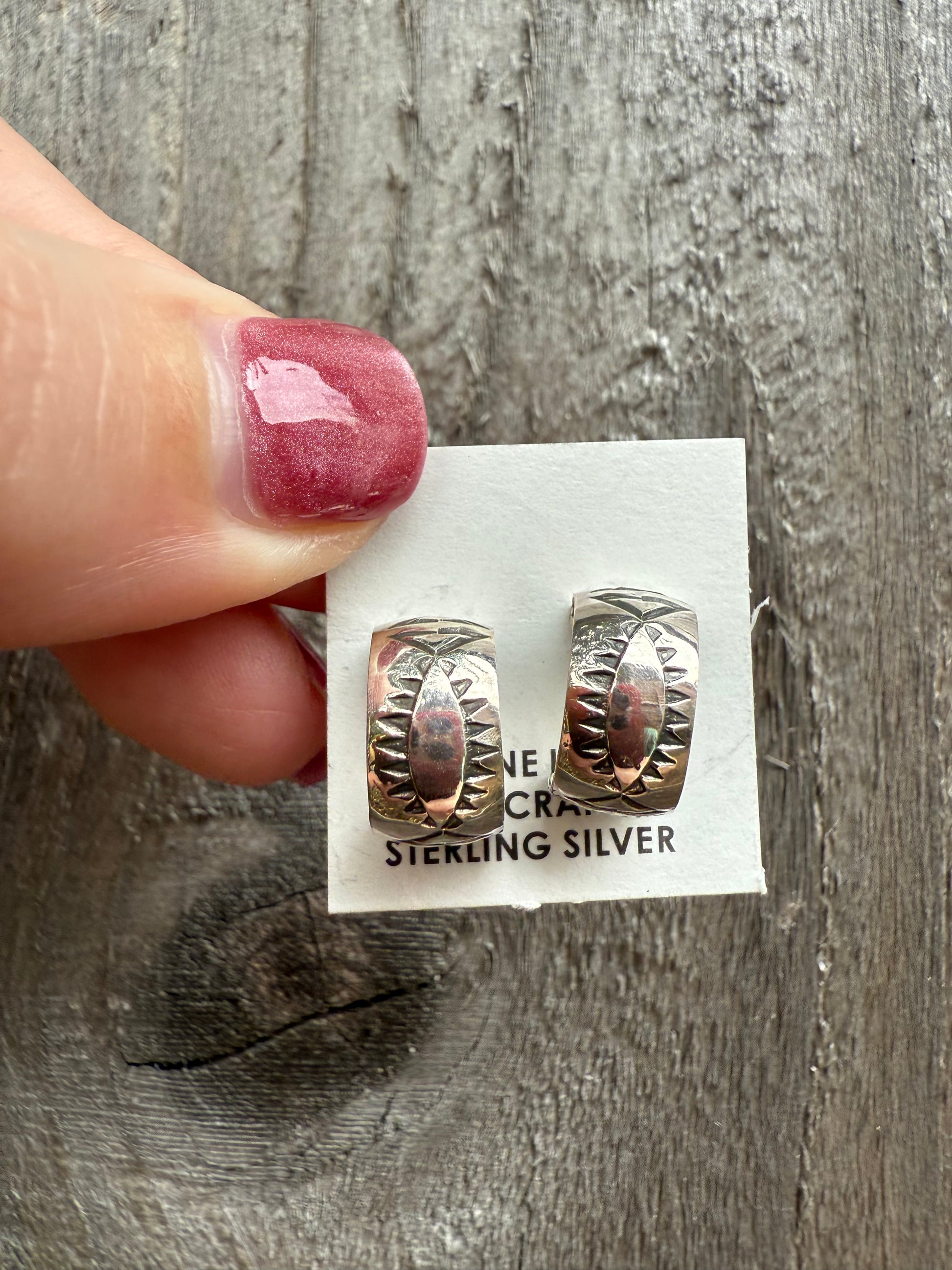 Native Navajo Huggie Hoop Sterling Silver Earrings