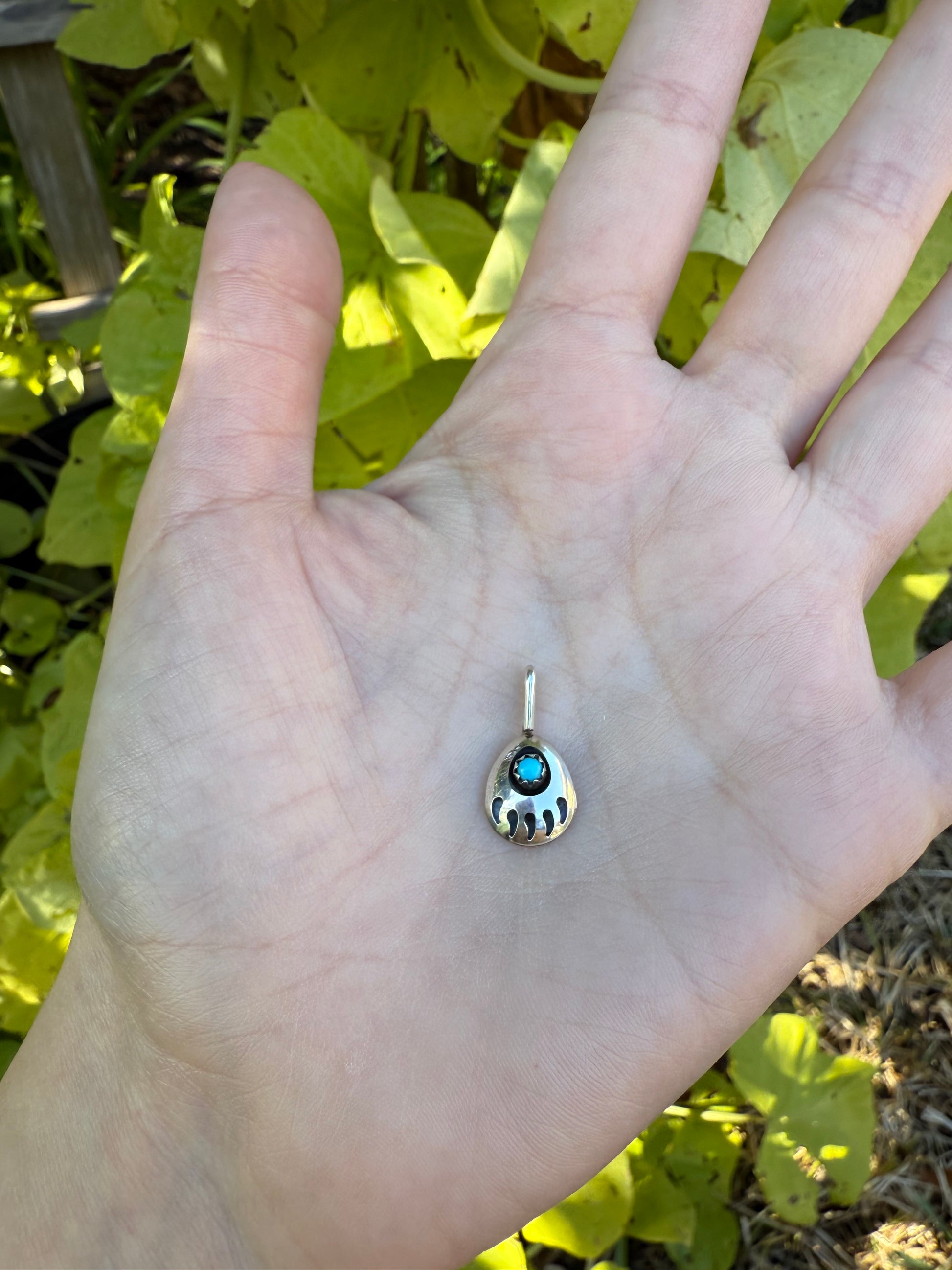 Navajo Bear Paw Turquoise Sterling Silver 925 Pendant