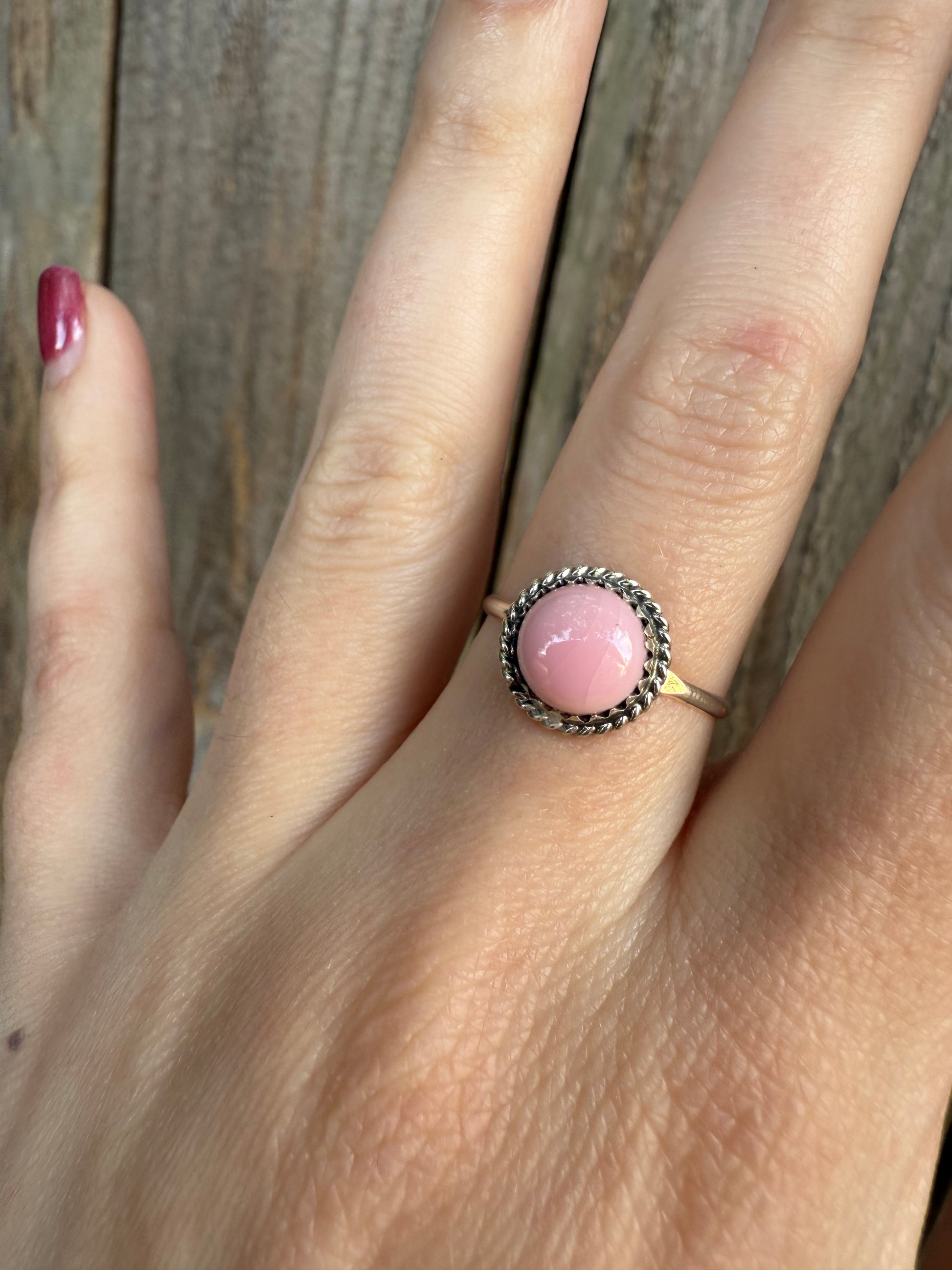 Navajo Pink Conch Esther White Sterling Silver Ring -Size 7.5