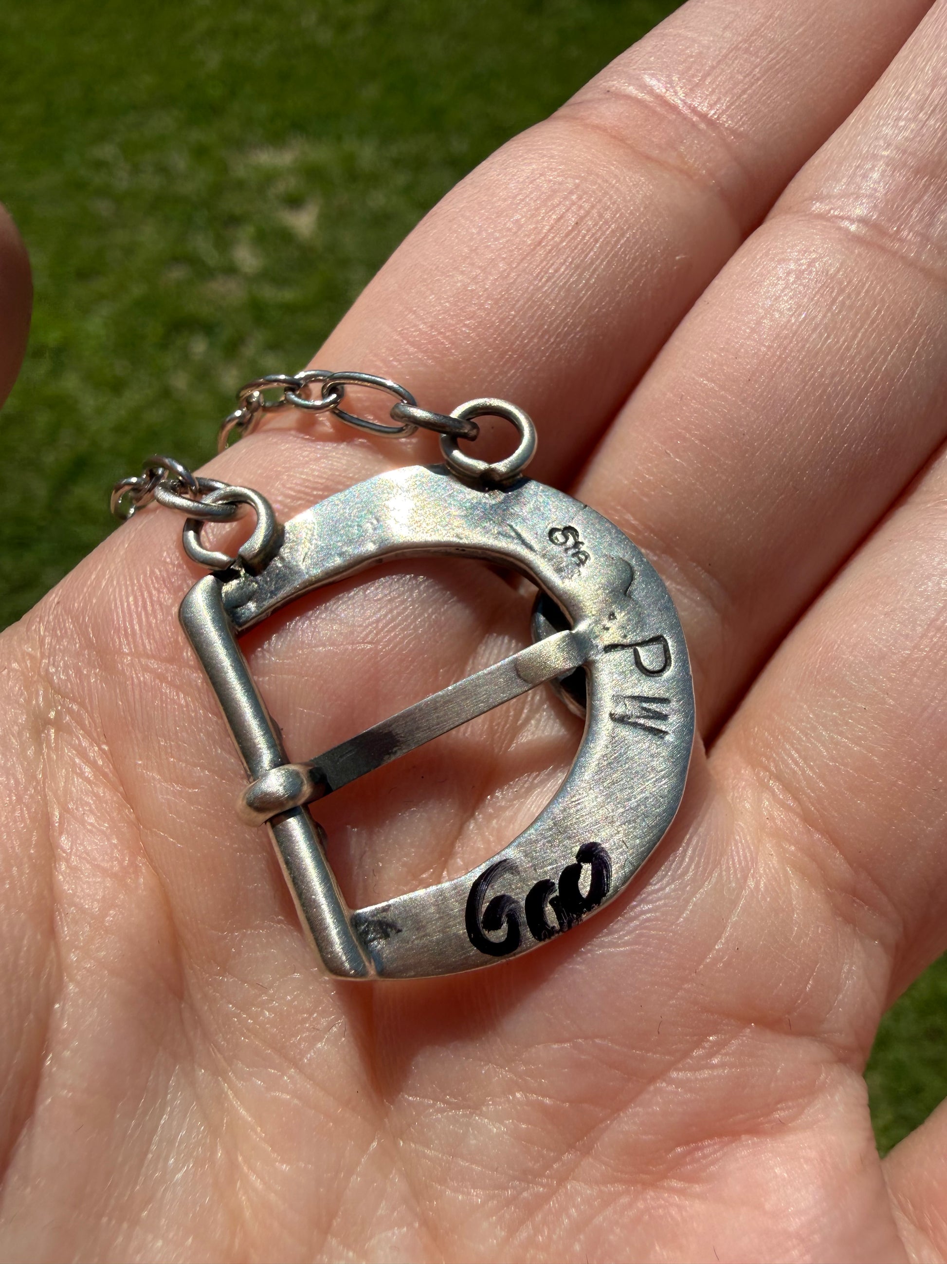 Navajo Sonoran Gold Turquoise Sterling Silver Belt Buckle Necklace