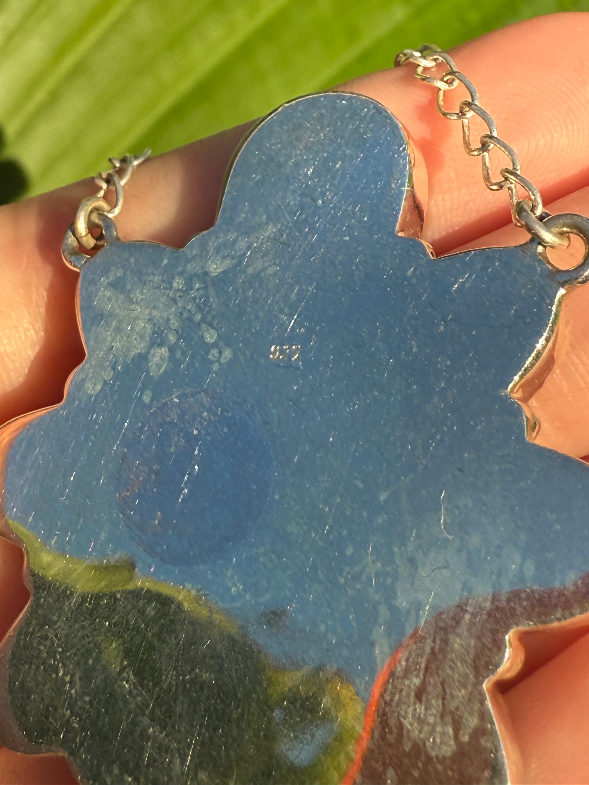 Peacock Dahlia Turquoise and Green Stone Flower 925 Sterling Silver Necklace