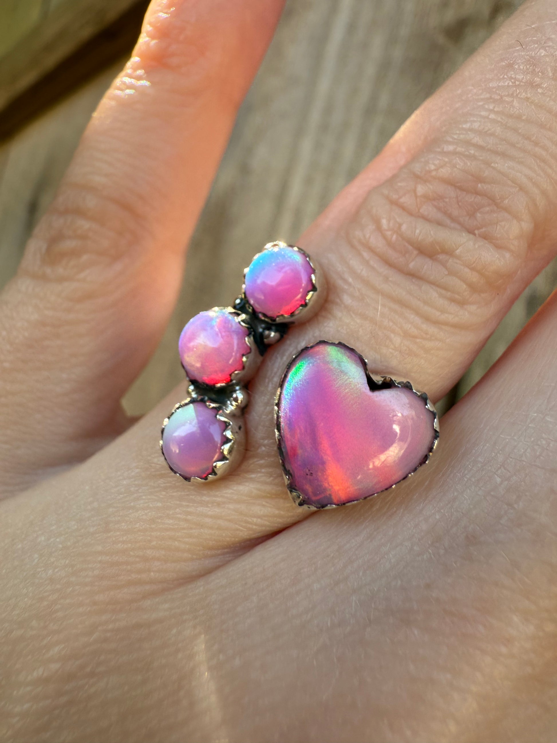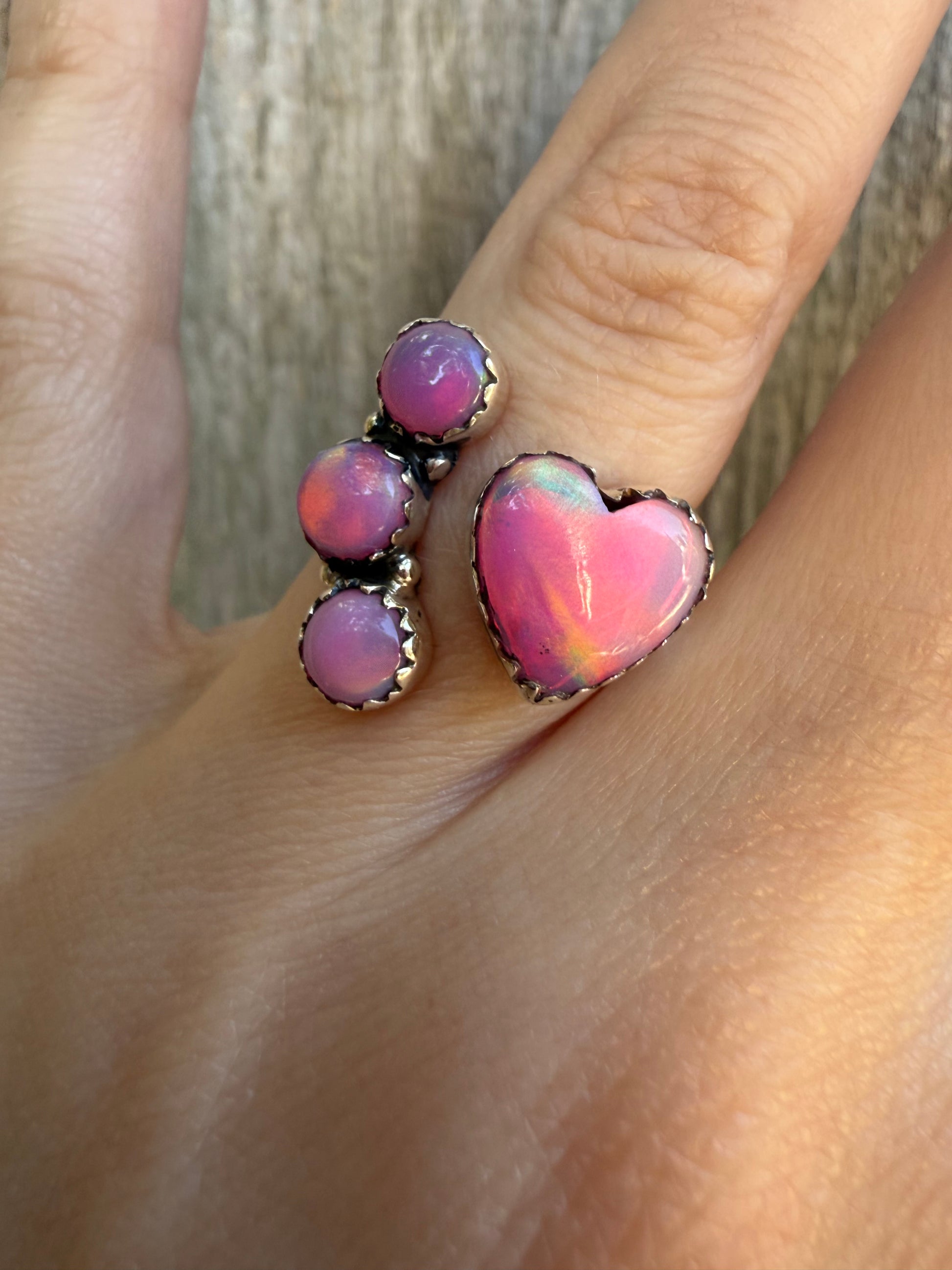 Pink Balloon Opal Heart Floater Sterling Silver Ring
