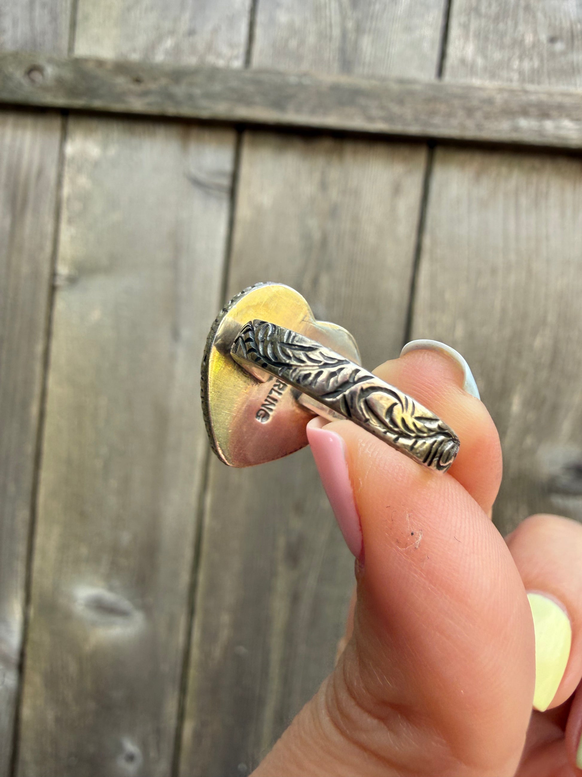 Pink Conch Heart Sterling Silver Ring - Size 7