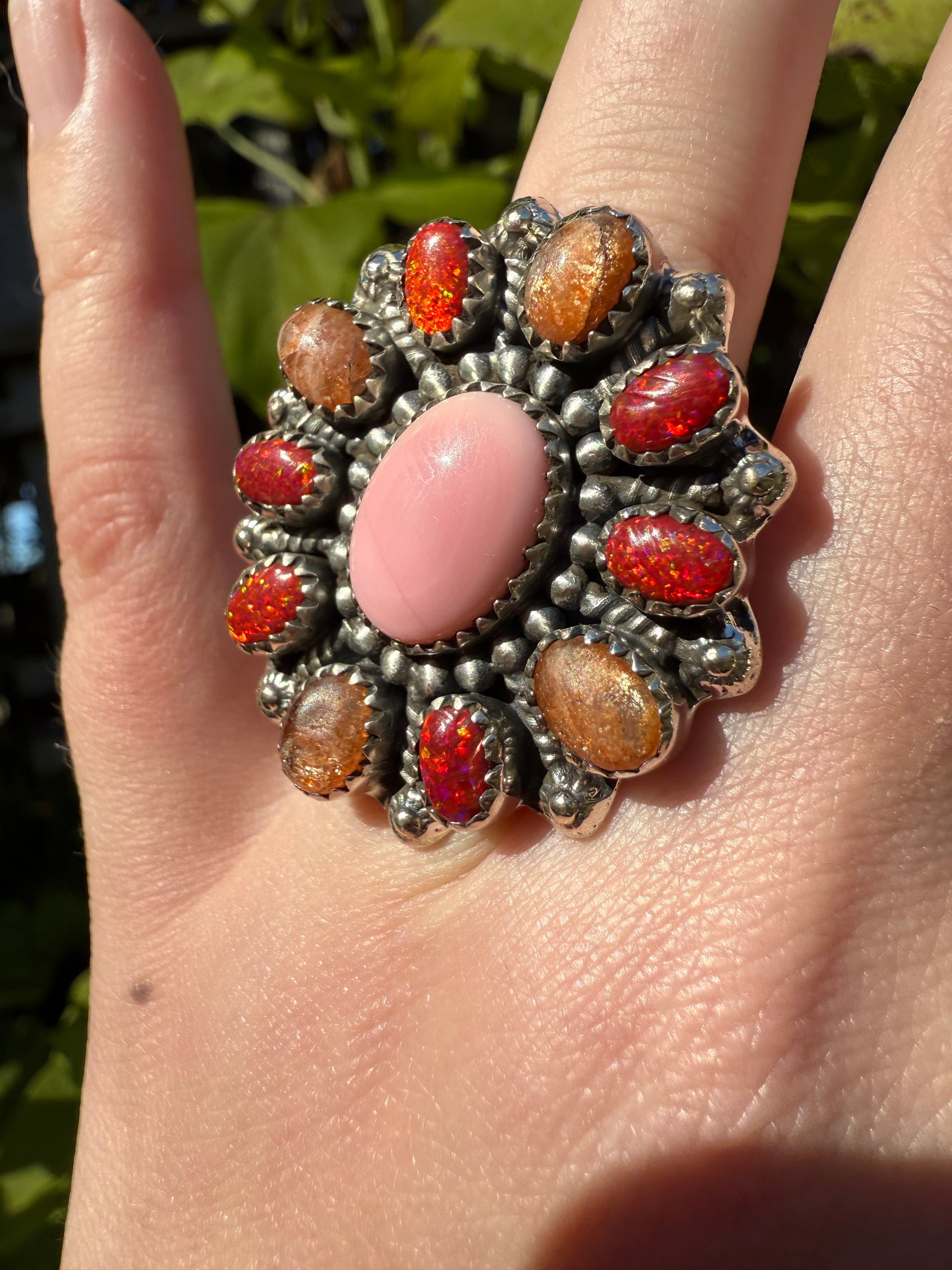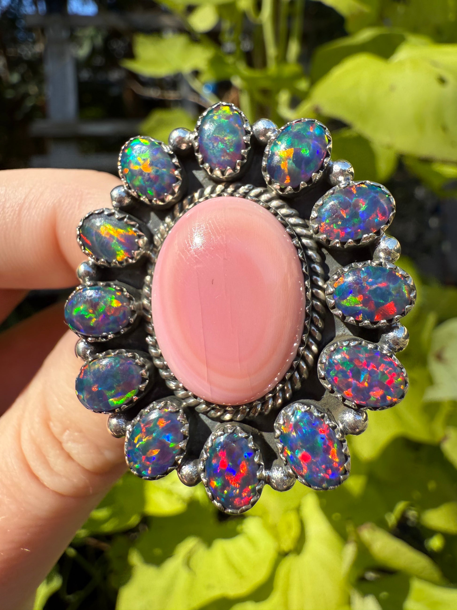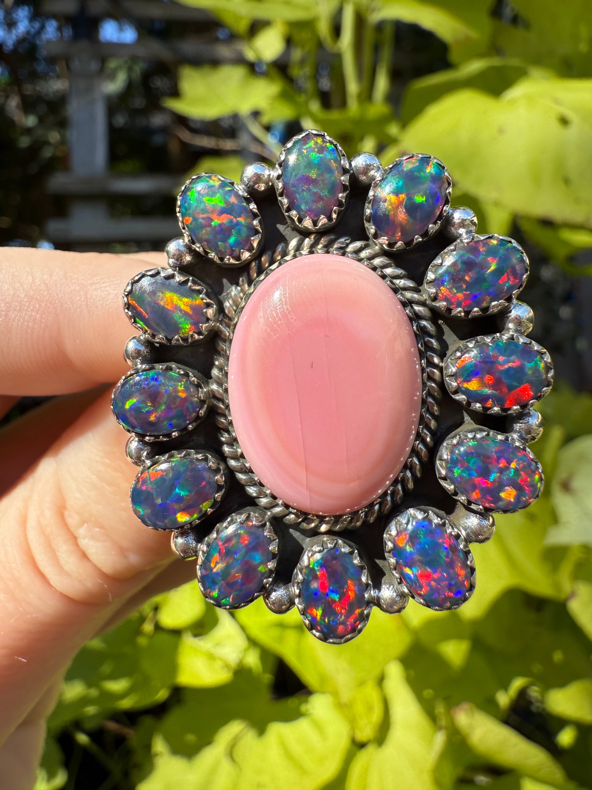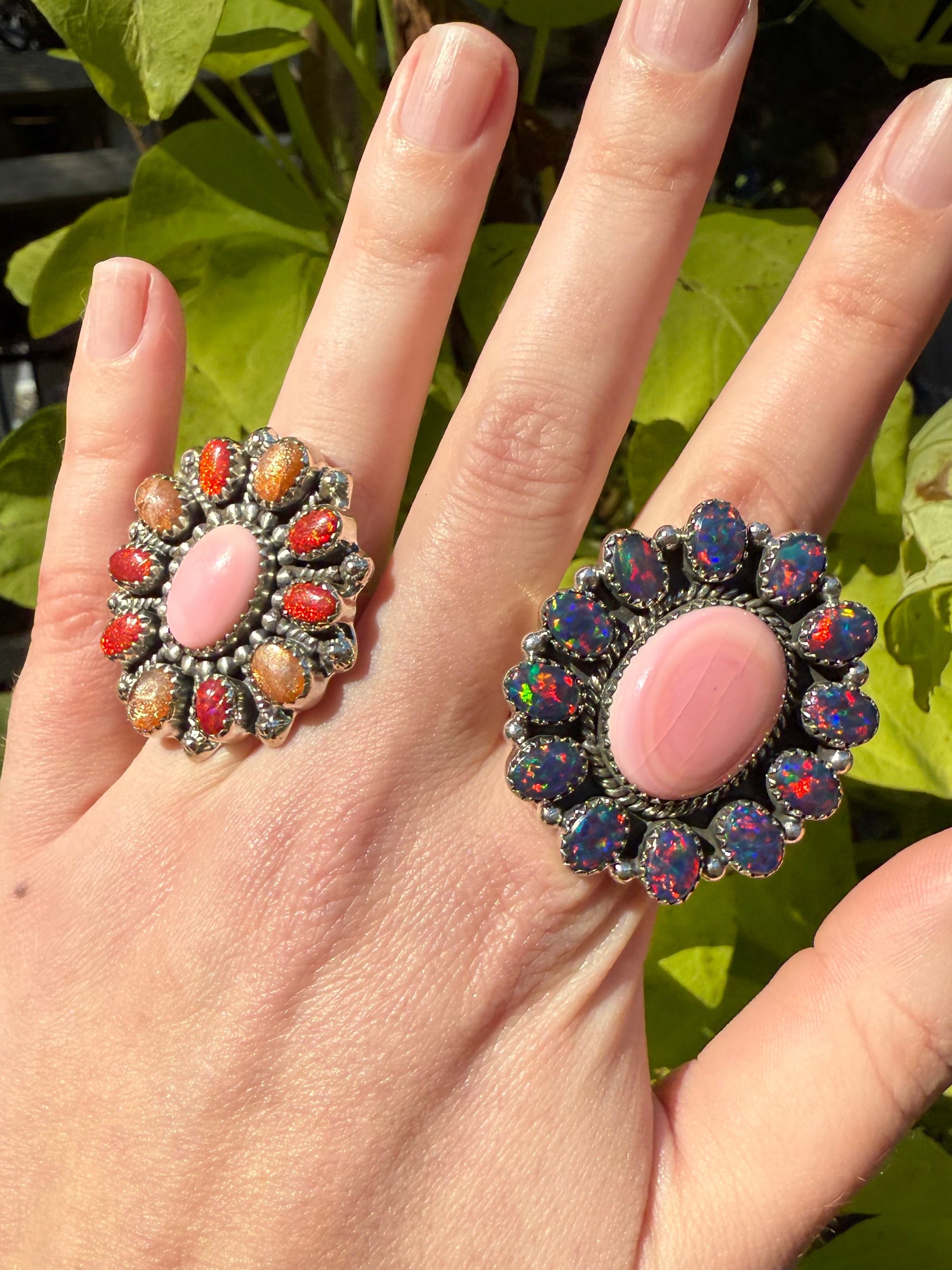 Pink Conch Statement Sterling Silver Balloon Opal Rings