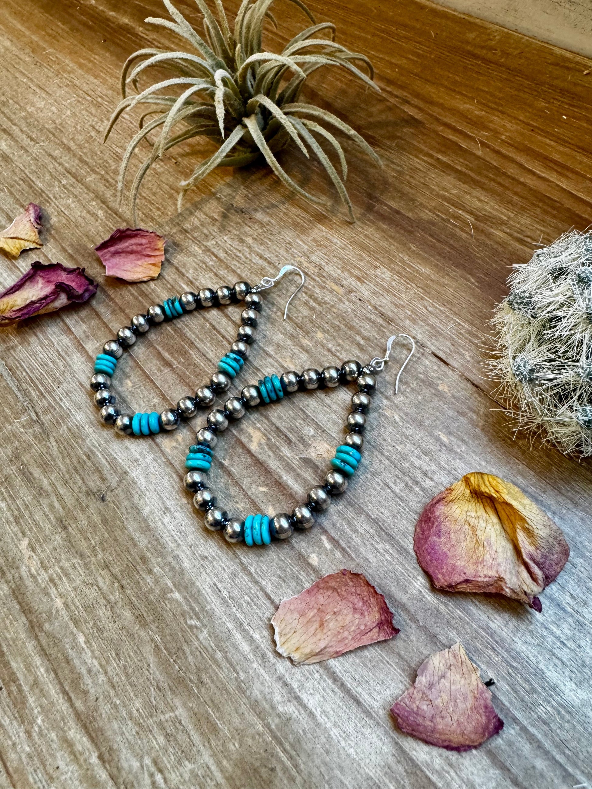Real turquoise dangle earrings & 6 mm Sterling silver pearls