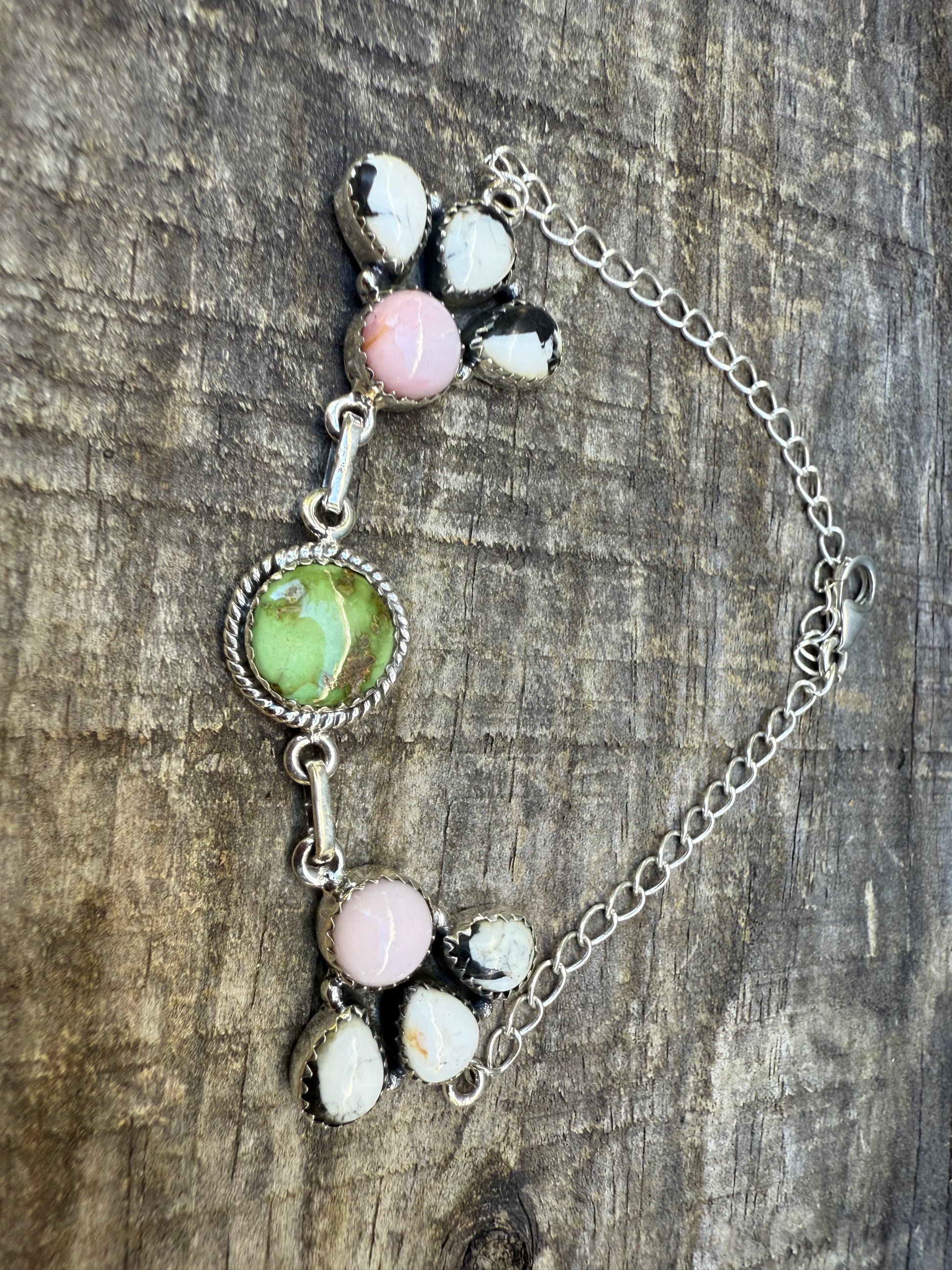 Sonoran Gold, Pink Opal, and White Buffalo Bracelet