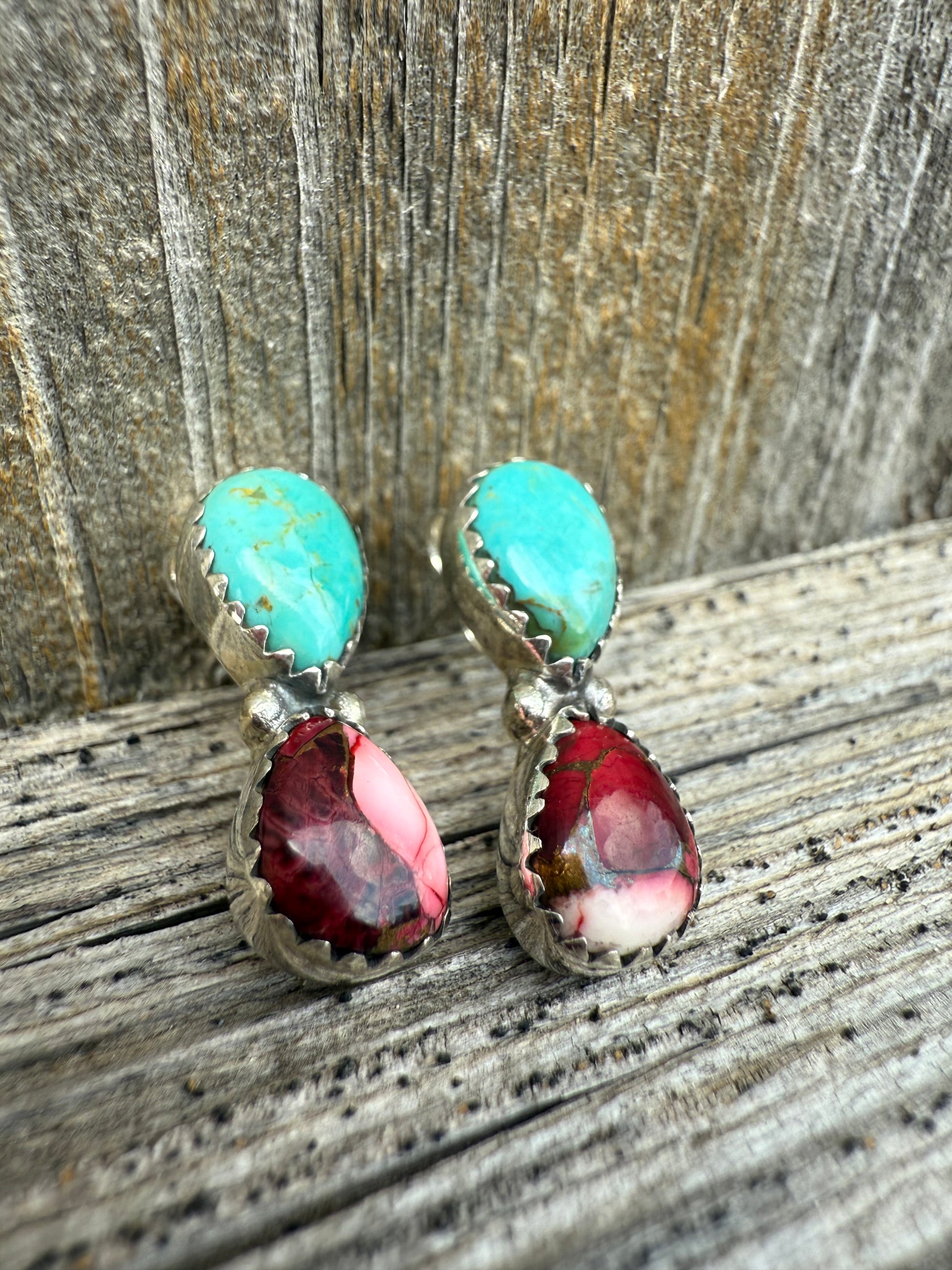 Elegant turquoise and red teardrop earrings perfect for any occasion. Add a pop of color to your outfit with these stunning pieces.