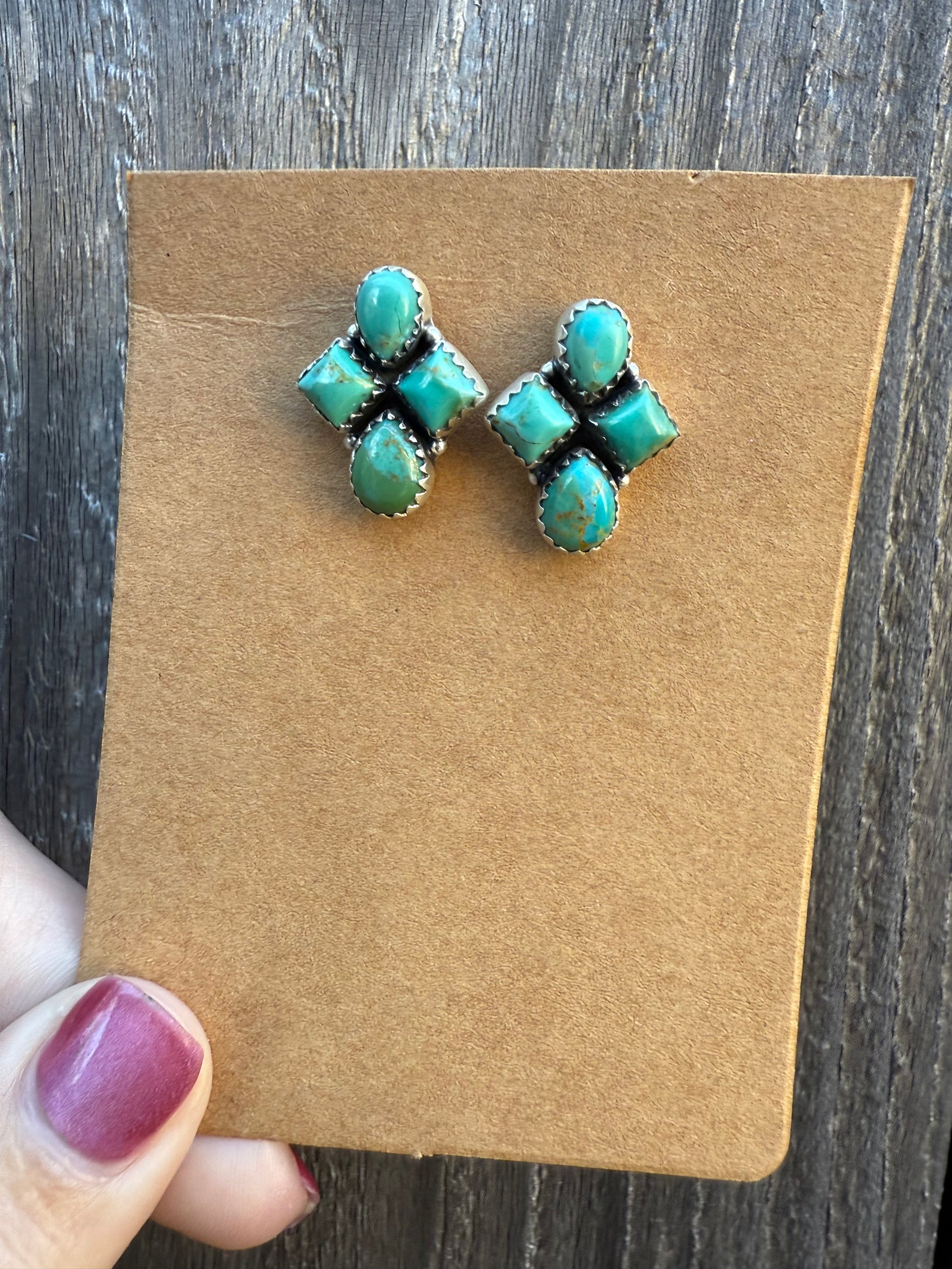 Turquoise Cluster Sterling Silver Earrings
