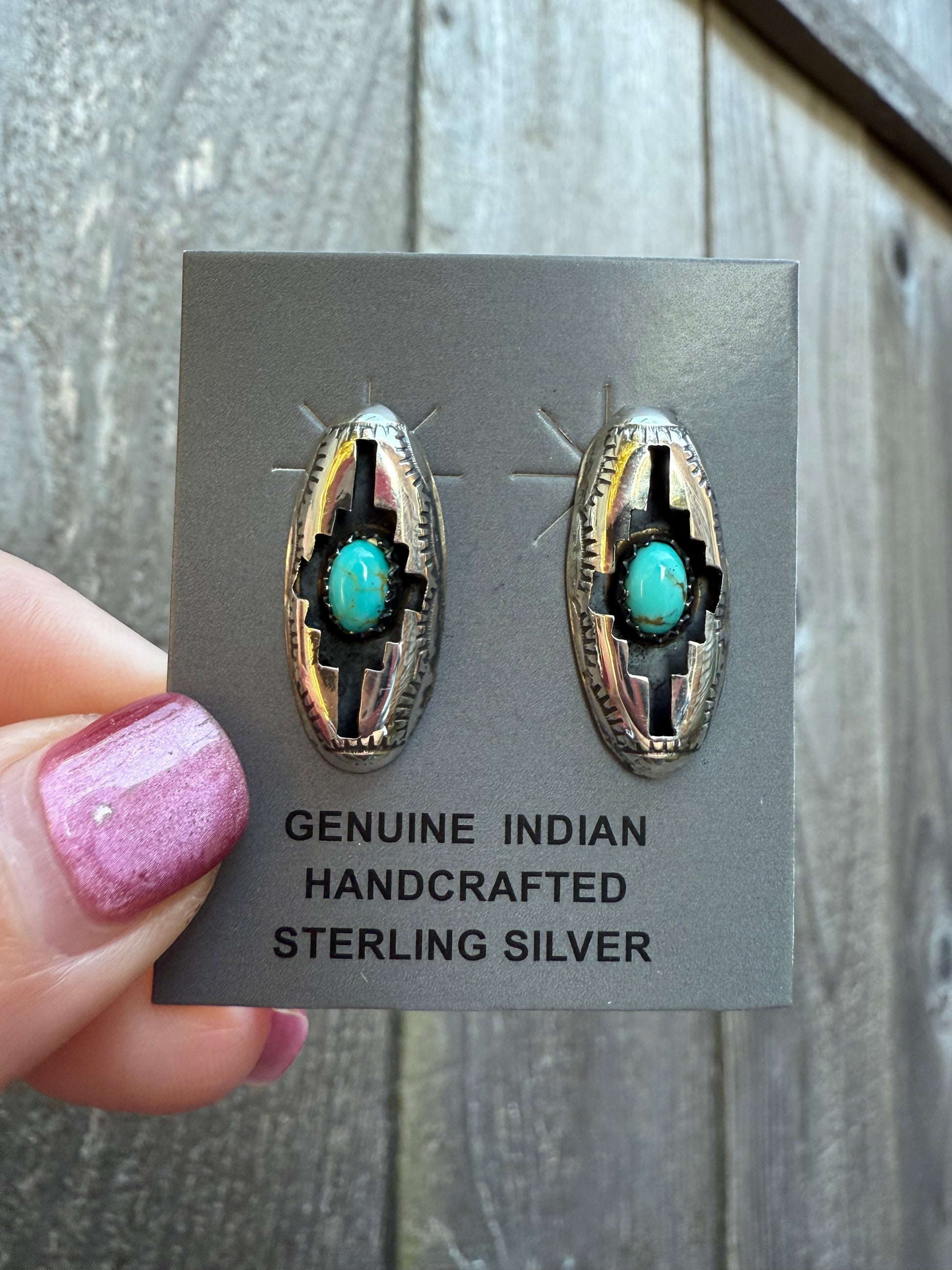 Navajo Turquoise Shadow Box Sterling Silver Earrings by Felix Perry
