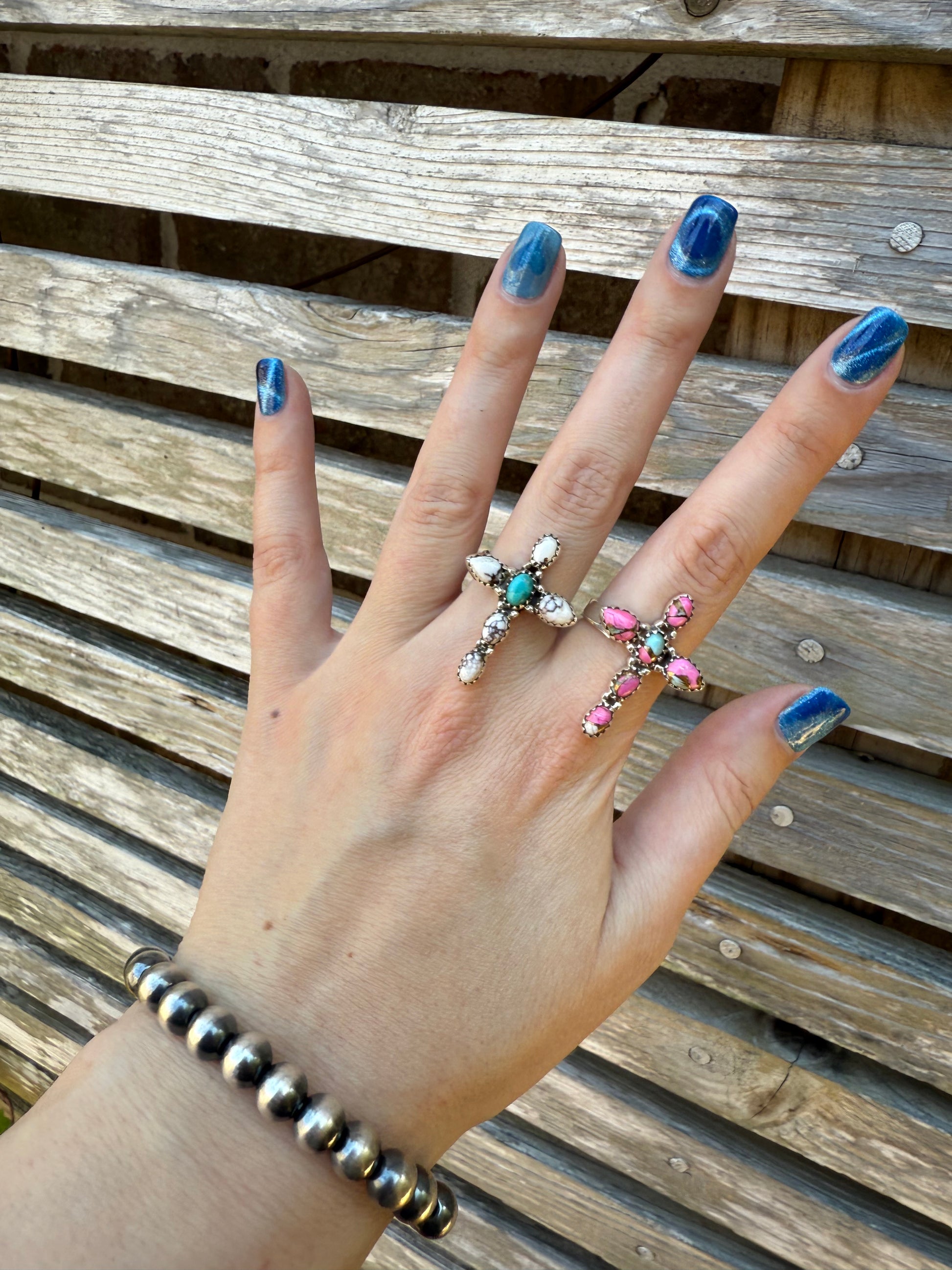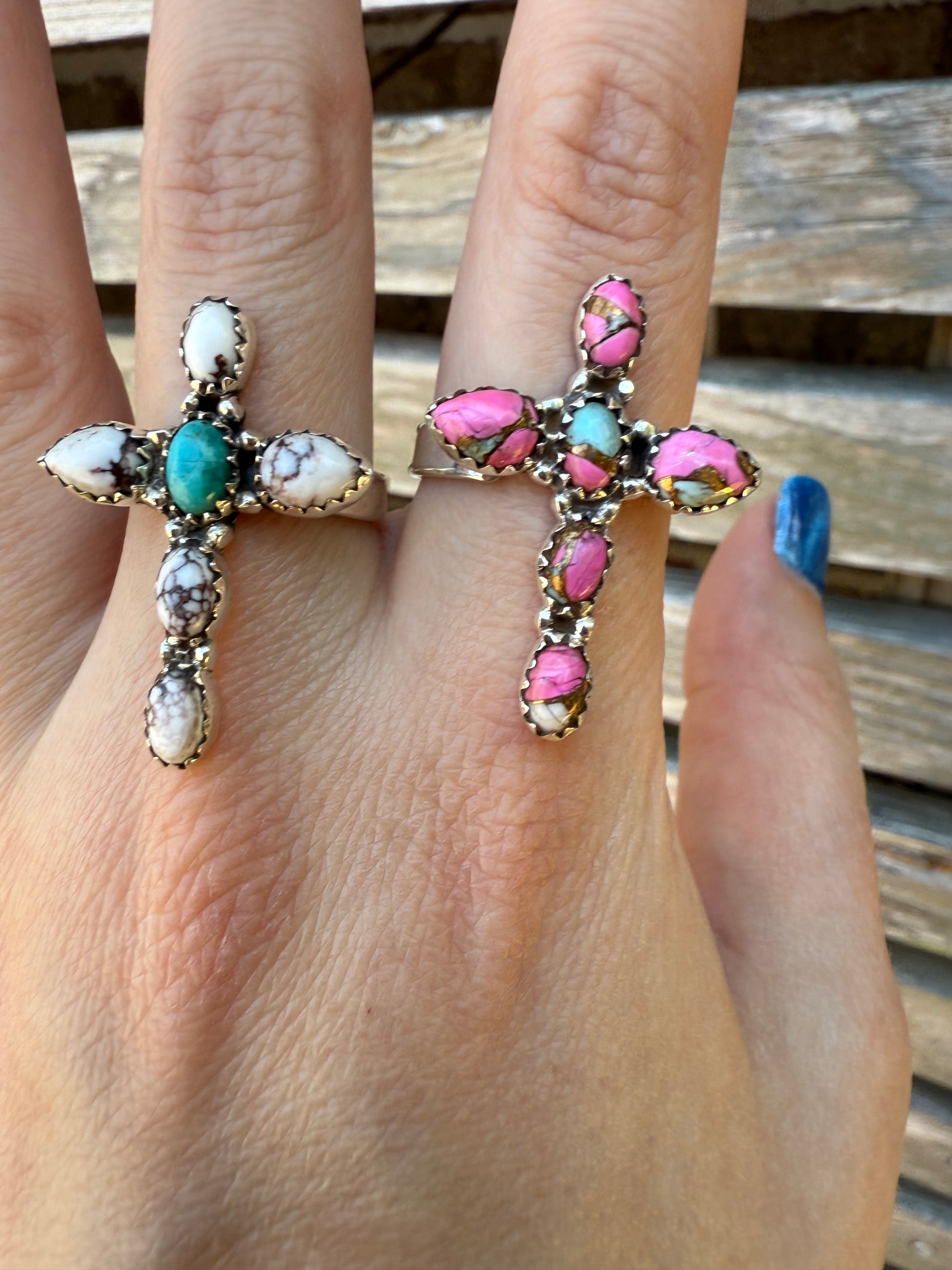 Cross Turquoise Sterling Silver 925 Adjustable Rings