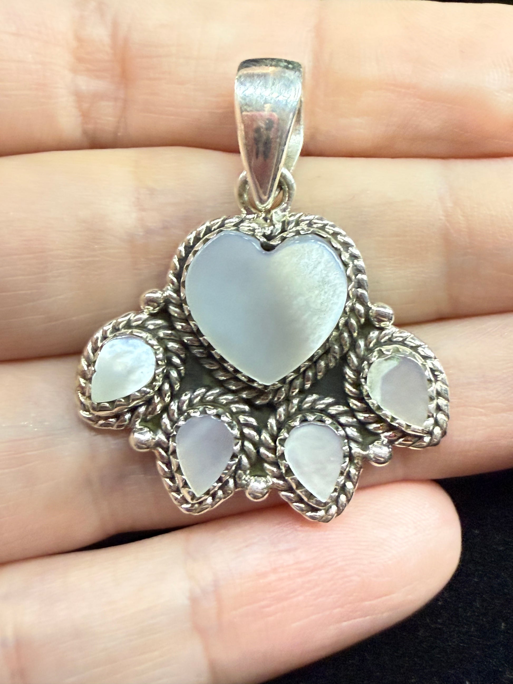 White Shell Paw Print Sterling Silver Pendant