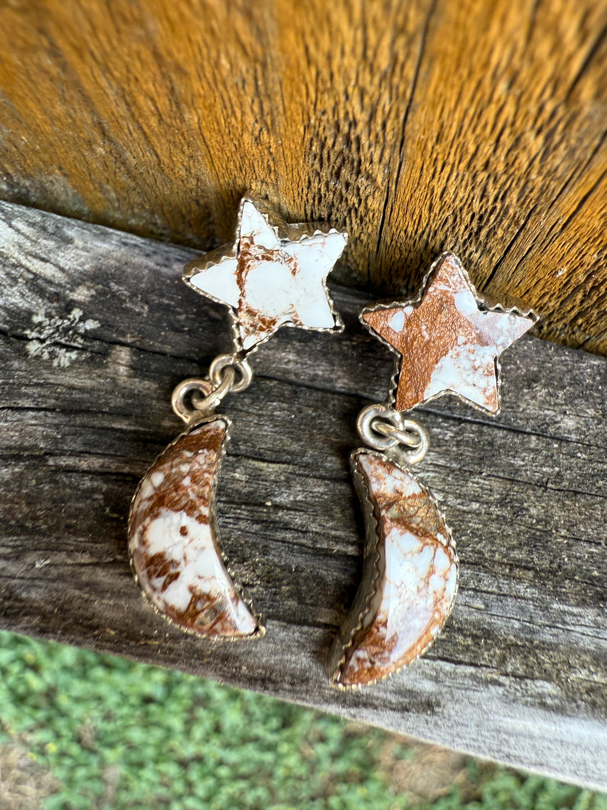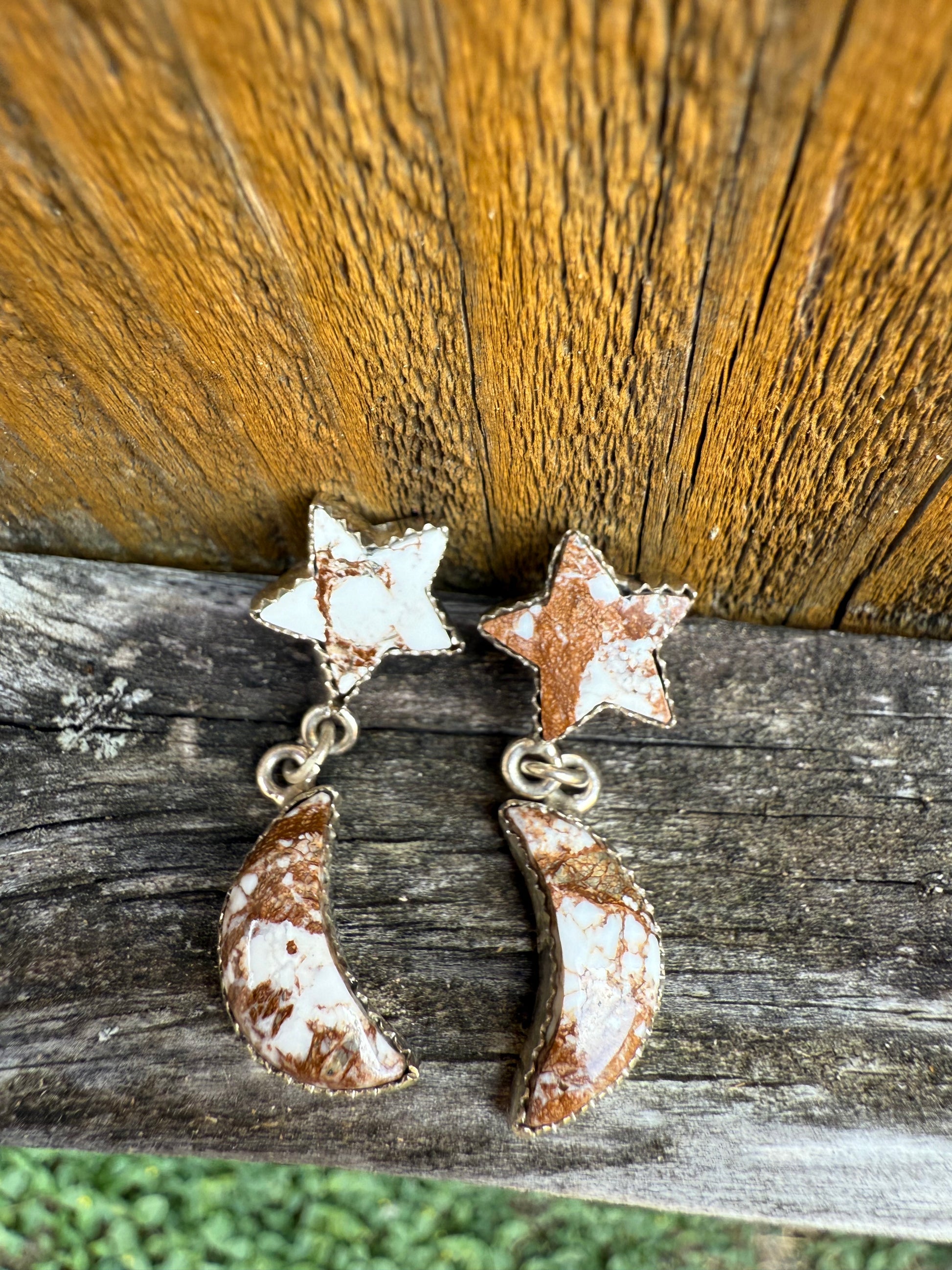 Wild Horse Star and Moon Sterling Silver Gemstone Earrings
